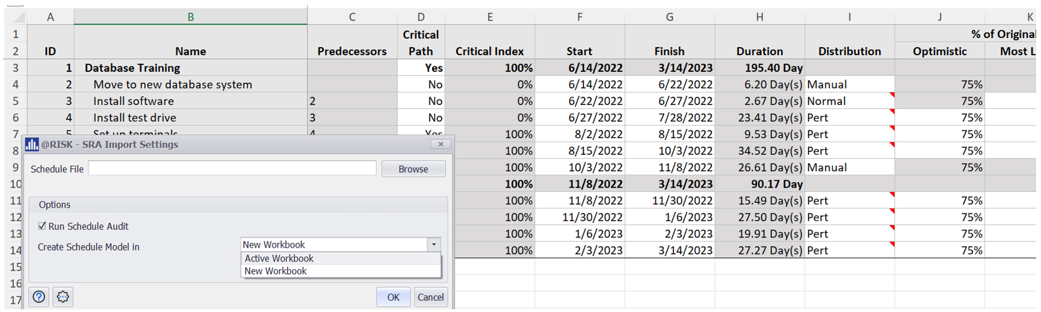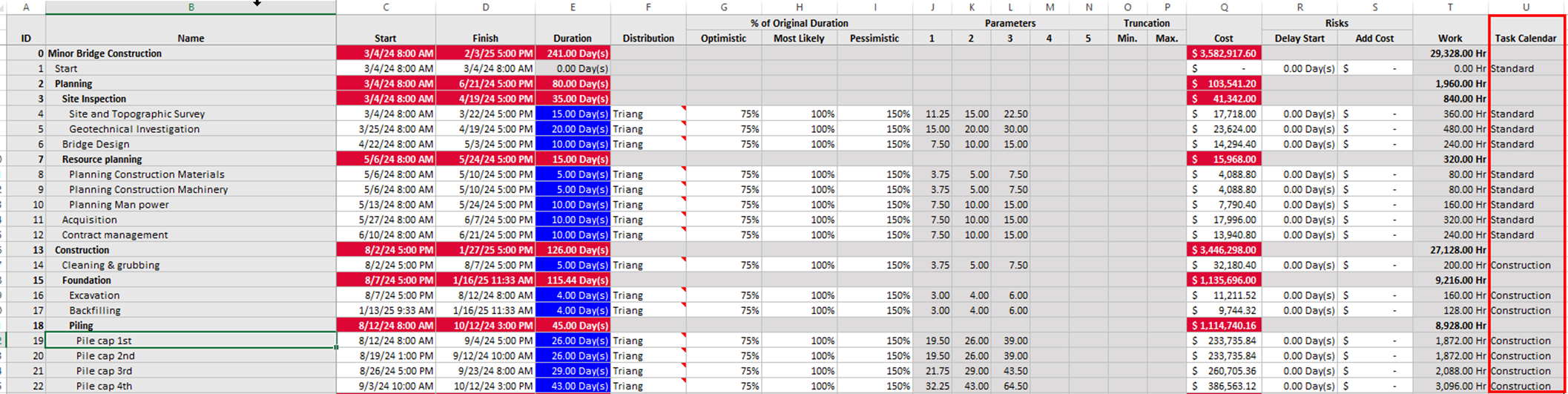 改进了SRA计划模拟,以考虑以前在MS Project或Primavera中定义的非活动任务。非活动任务现在在模型工作表、甘特图和SRA报告中具有不同的格式。