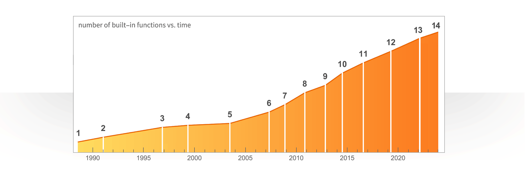 Mathematica 1 中的 500+ 函数仍然存在于 Mathematica 14 中——但现在有超过 6,000 个函数,以及大量重要的新想法,极大地扩展了系统的愿景和范围。