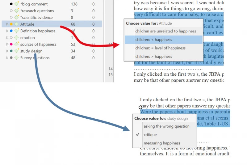 另一个很酷的特性是,您可以将一个类别代码拖到一个数据段中,并选择它的一个或多个子代码进行编码。