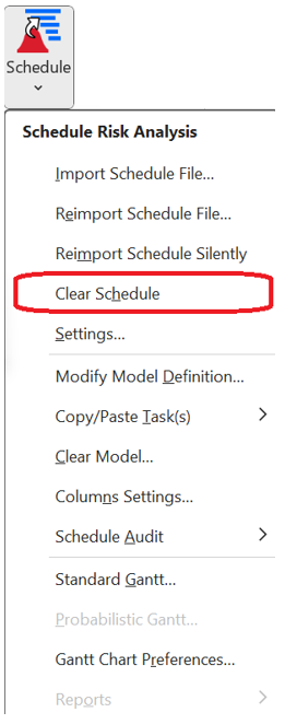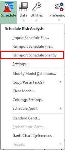 改进了SRA计划模拟,以考虑以前在MS Project或Primavera中定义的非活动任务。非活动任务现在在模型工作表、甘特图和SRA报告中具有不同的格式。