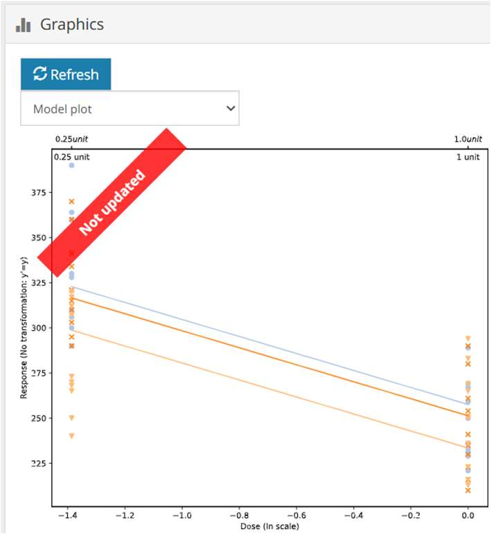 在当前版本中,对制剂或数据的任何更改都会立即更新图形窗口,导致服务器请求的数量与更改的数量一样多。 在版本1.2.0中,图表更新将按需进行,可以通过点击Refresh按钮或每次点击Run或Publish来触发。 通过限制服务器请求的数量,应用程序在数据输入过程中将变得更加响应迅速。 在图表未被刷新前,“Not updated”消息将一直出现在图表上。 |