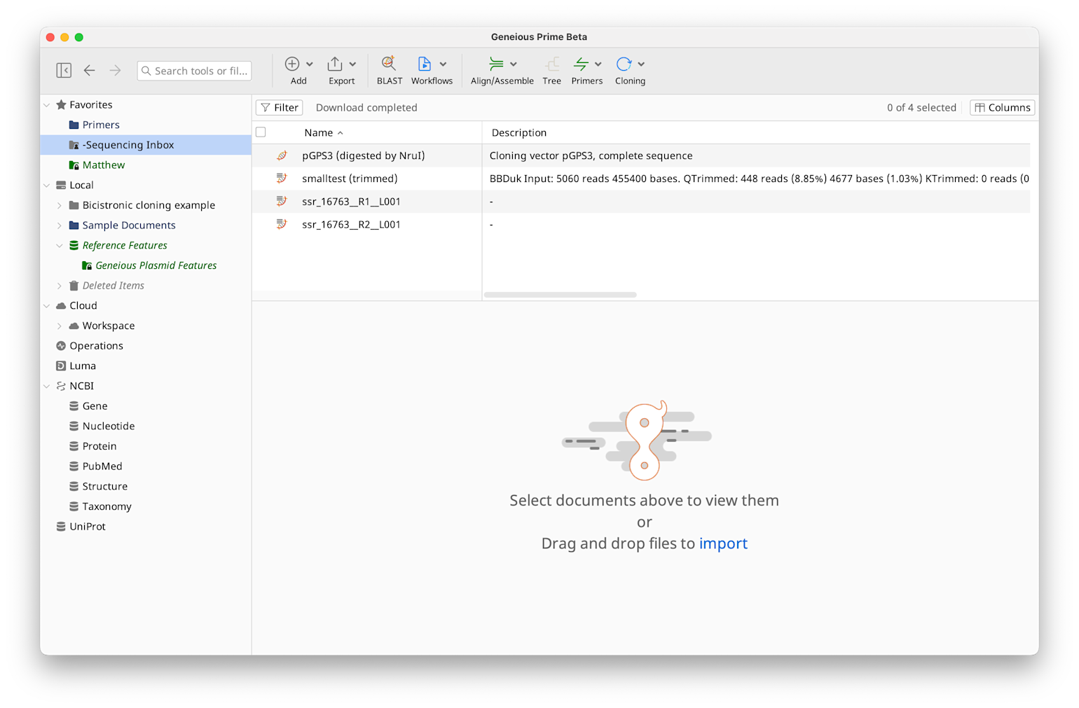 导入 SnapGene *.dna 文件现在会为第一级历史记录创建片段注释,显示某些克隆类型的模拟方法记录,并支持直接在 Geneious Prime 中恢复父文件。