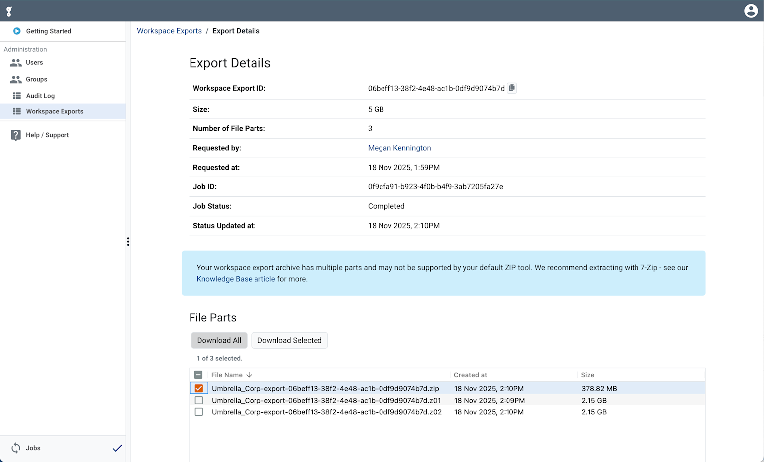 云工作区导出现在可以直接从浏览器下载,数据结构也得到了改进。这使得管理员更方便地保存组织云文档和文件夹的记录。