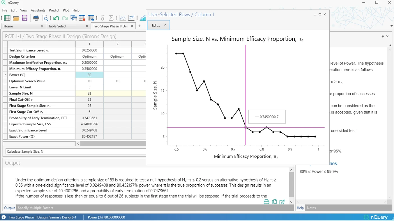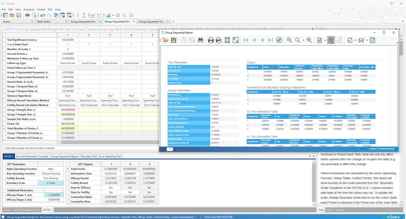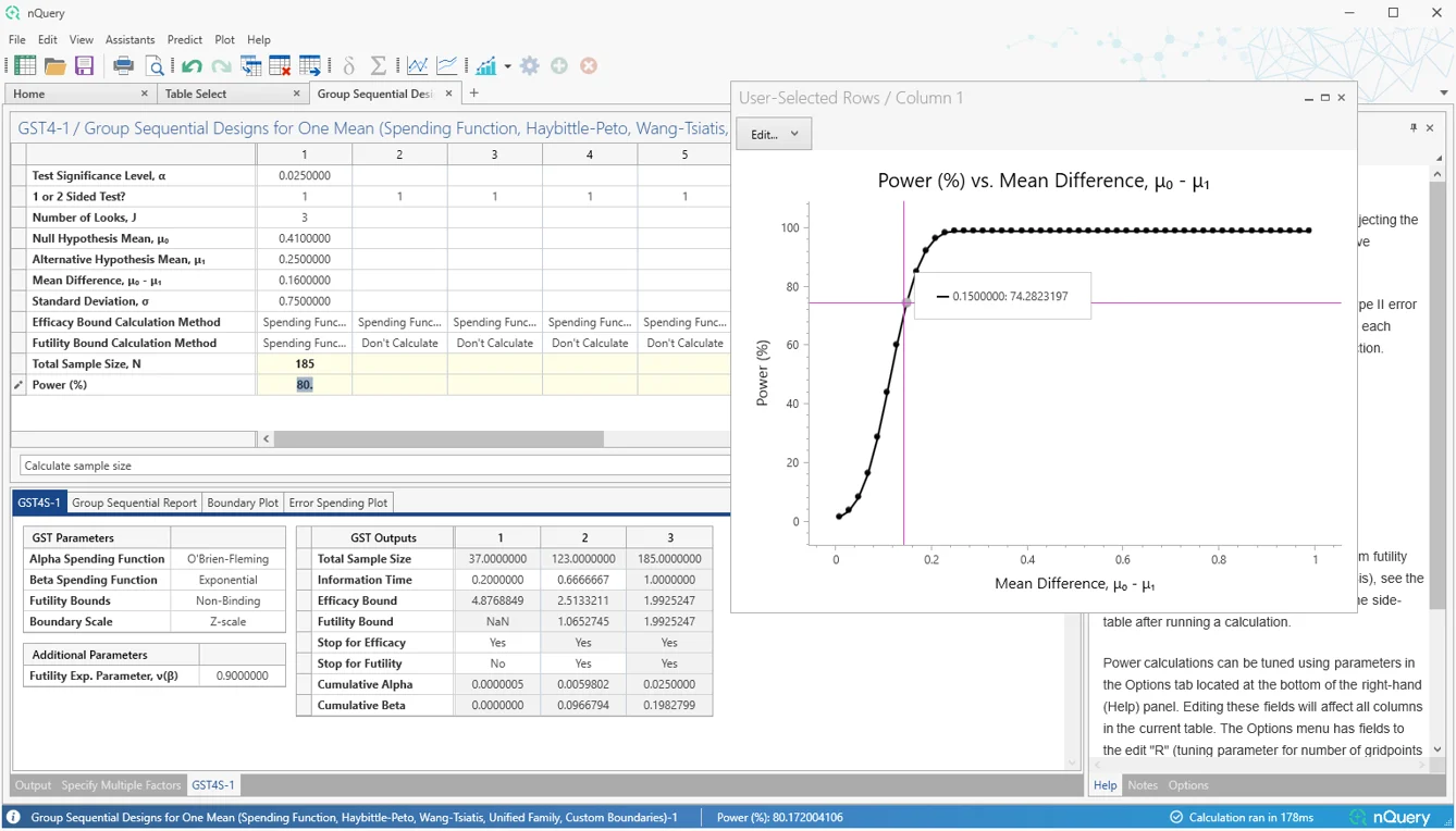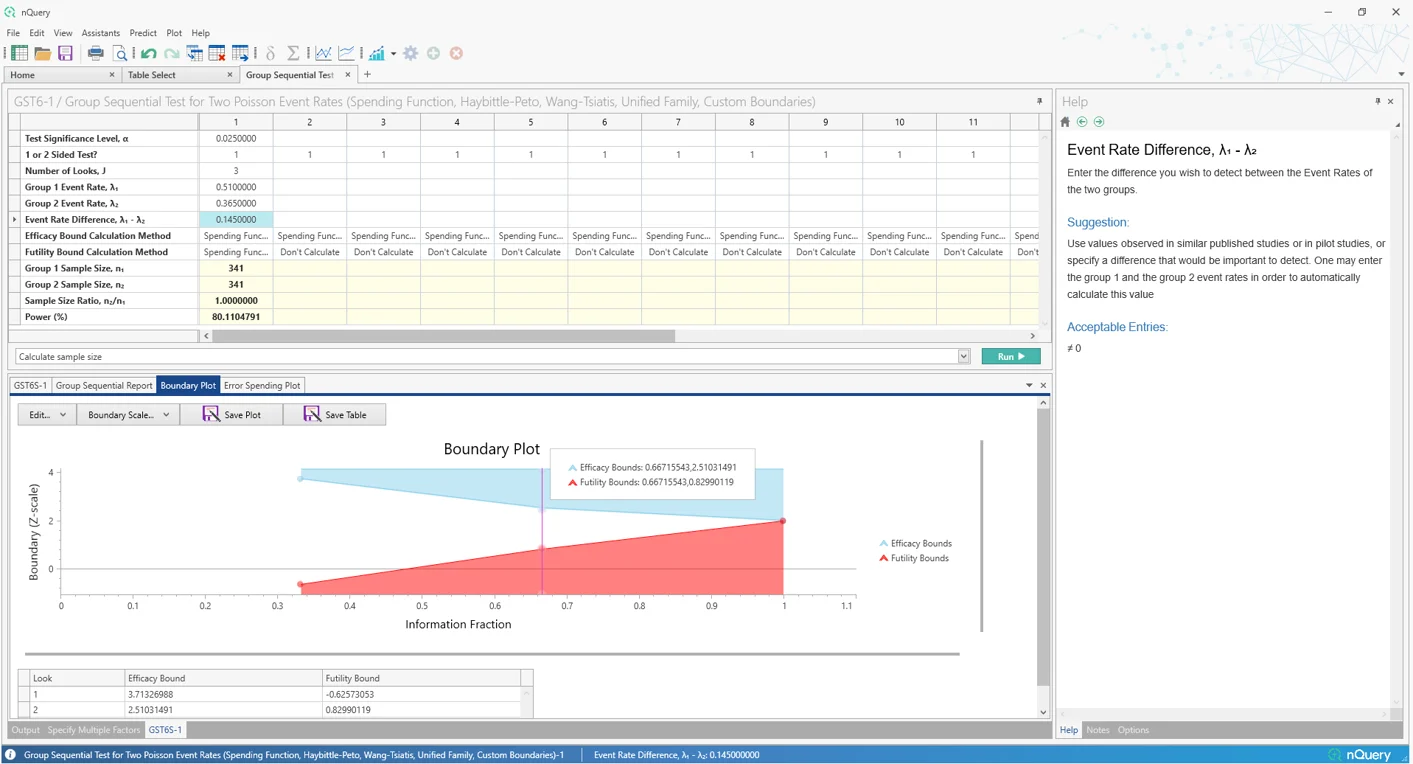 nQuery 9.6 为单样本均值、双计数(泊松)和双样本对数秩检验(恒定入组率、风险比)场景添加了改进的组序贯表格。这些建立在自 nQuery 9.3 以来添加的改进组序贯表格之上。未来更新将扩展到更多场景。