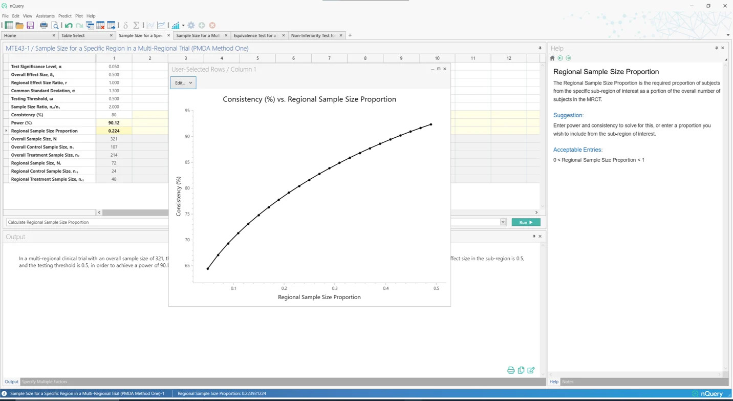 在 nQuery 9.6 中,添加了基于多区域临床试验样本量分配的第一(局部显著性)和第二(效应保留)PMDA 标准样本量分配表格。此外,还添加了桥接研究方法的表格,当某地区需要额外试验才能获得批准时使用。